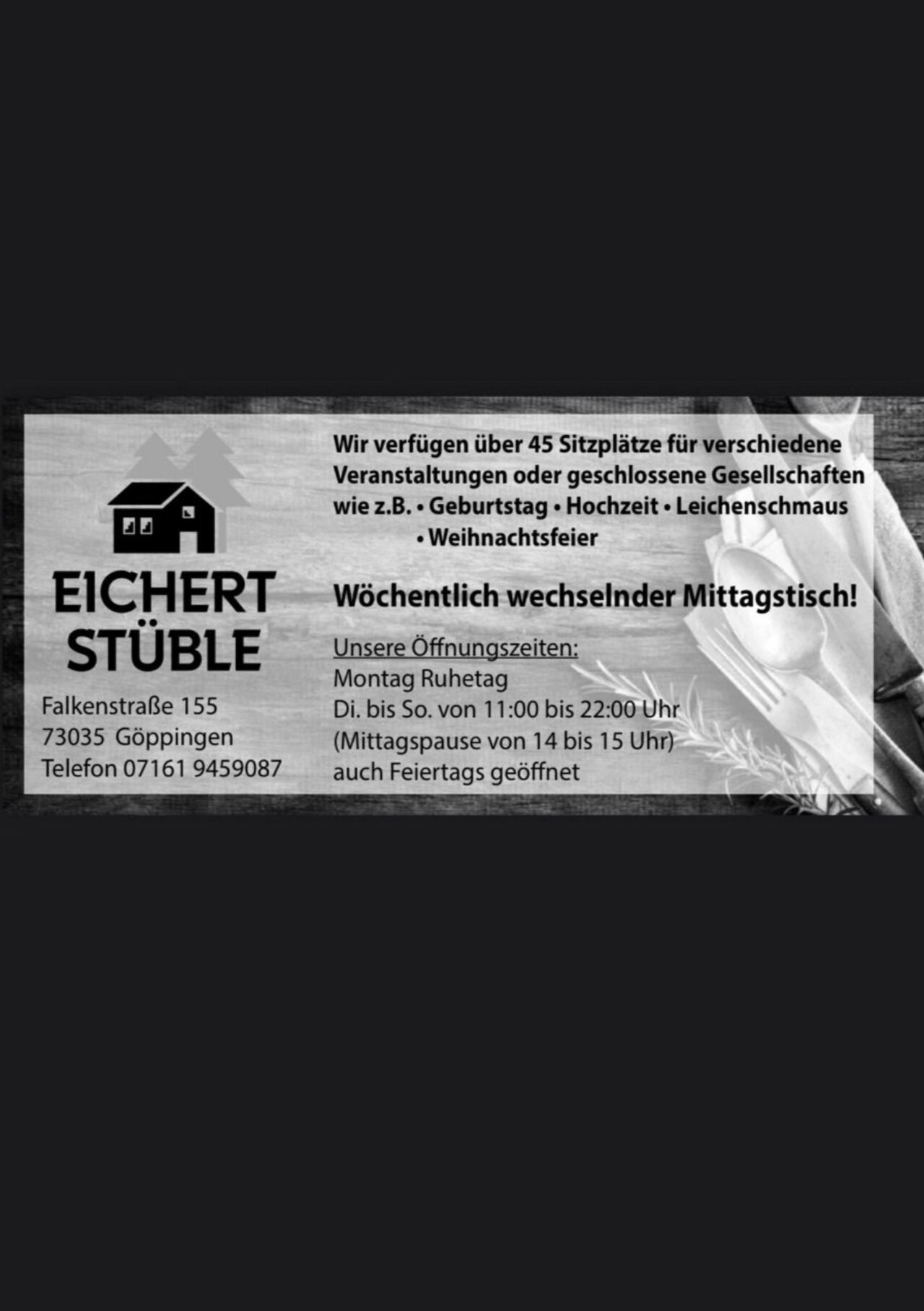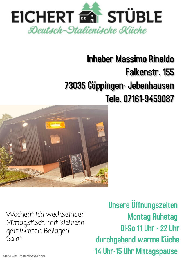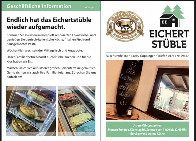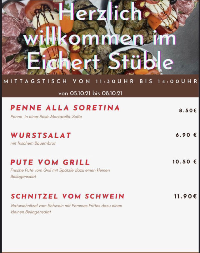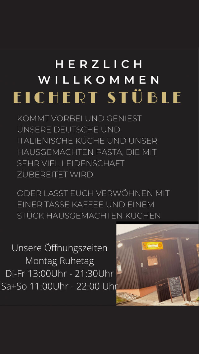 Wir freuen uns Sie im Eichertstüble begrüßen zu dürfen durch unsere leckeren Speisen und Getränke ist für ihr leibliches Wohl bei uns gesorgt. Wir legen großen Wert auf Frische und Qualität beim Zubereiten unserer Speisen.