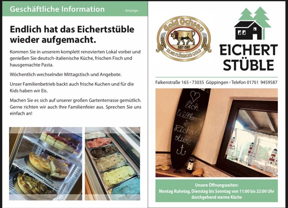 Noch kein passendes Geschenk für Familie, Freunde und Kollegen/innen dann ist ein Gutschein von unserem Eichertstüble genau das Richtige.