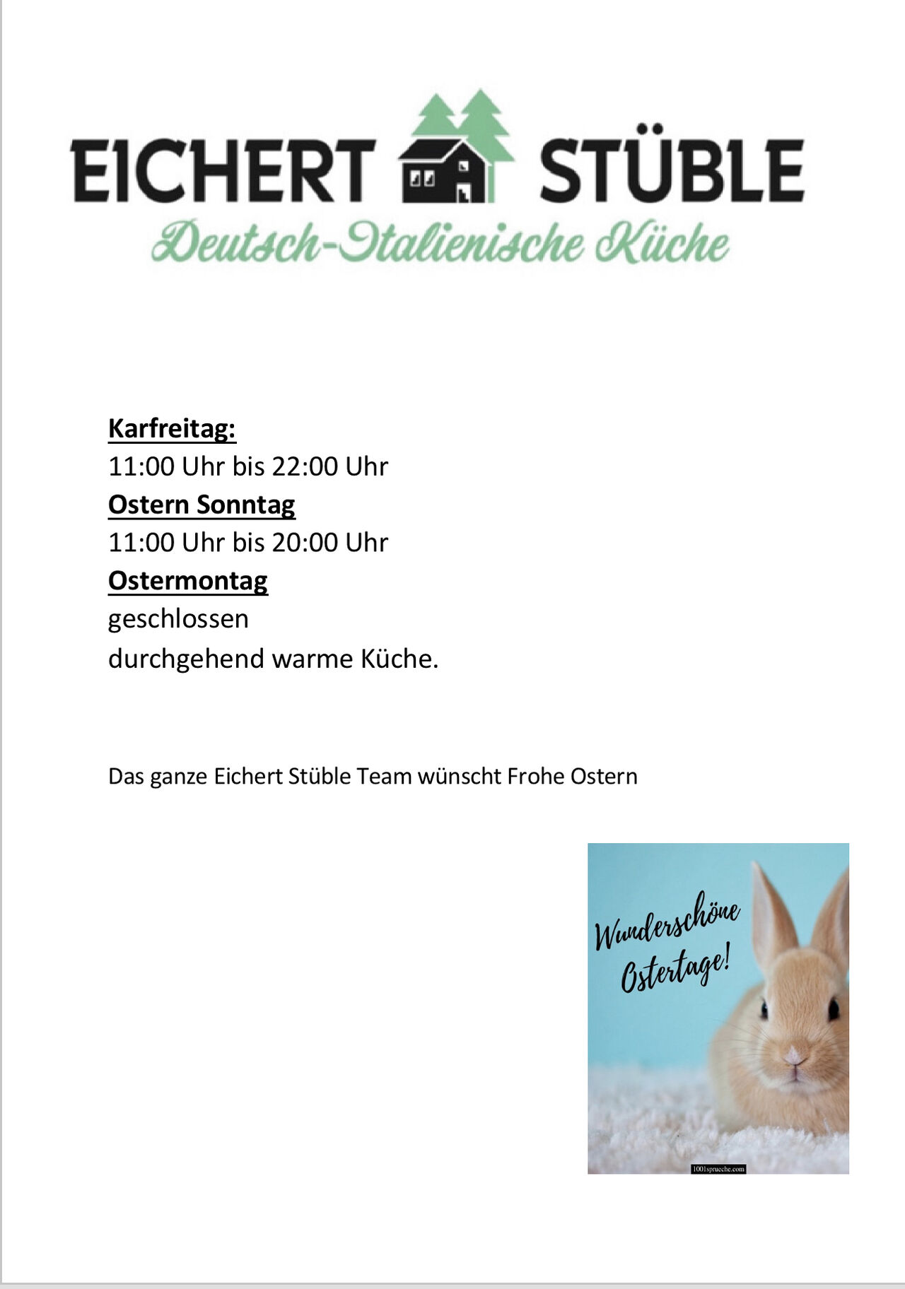 Dienstag bis Freitag 14:00-21:00 Uhr warme Küche durchgehend